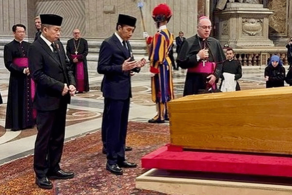 Presiden Republik Indonesia, Joko Widodo (Jokowi), mengambil langkah yang sangat signifikan dengan menghadiri upacara penghormatan terakhir untuk Paus Fransiskus yang baru saja meninggal dunia. Dalam momen penuh haru ini, Jokowi memberikan penghormatan mendalam di Vatikan, tempat di mana jenazah Paus Fransiskus disemayamkan sebelum pemakamannya. Tindakan Jokowi berdoa di depan jenazah Paus Fransiskus tidak hanya mencerminkan penghormatan terhadap sosok Paus yang telah meninggalkan jejak besar dalam sejarah Gereja Katolik dan dunia secara keseluruhan, tetapi juga menjadi simbol pentingnya perdamaian, toleransi, dan kerjasama antar umat beragama di dunia ini.