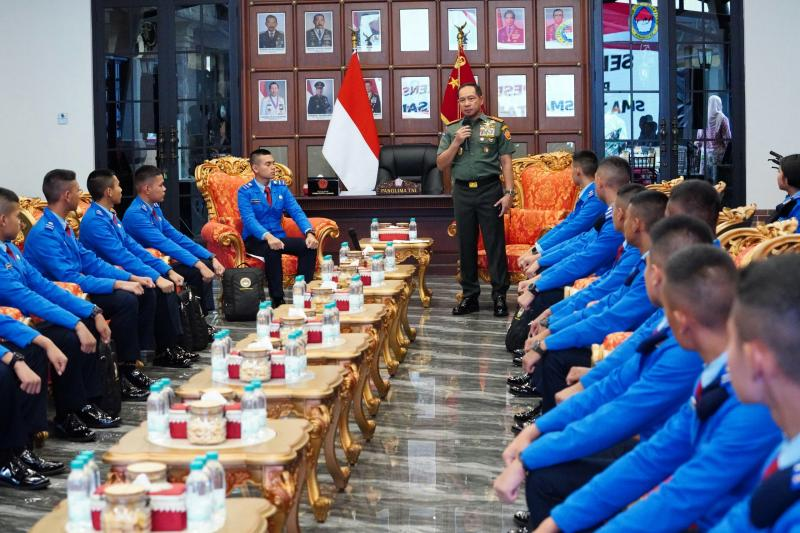 “Kalian adalah harapan bangsa, penerus estafet kepemimpinan Indonesia. Mulailah sekarang untuk menempa karakter yang kuat, karena bangsa ini membutuhkan pemimpin yang tidak hanya cerdas, tetapi juga memiliki integritas tinggi, keberanian, dan jiwa nasionalisme yang tak pernah pudar,” tegas Panglima TNI di hadapan ratusan siswa yang mendengarkan dengan penuh antusiasme.